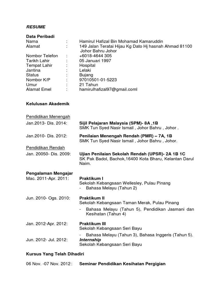 Contoh Resume Untuk Lepasan SPM: Download Format Resume Lengkap, Ringkas & Padat Ini - Edu Bestari