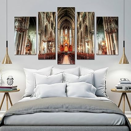 5Panel Wall Art Peinture Prague St.Vitus Cathédrale Gothique Architecture L'église Photos Religieux Décor Peintures à L'huile Impressions sur Toile Accueil Décoration Moderne pour Salon Cadeau LwqArt: Amazon.fr: Bricolage